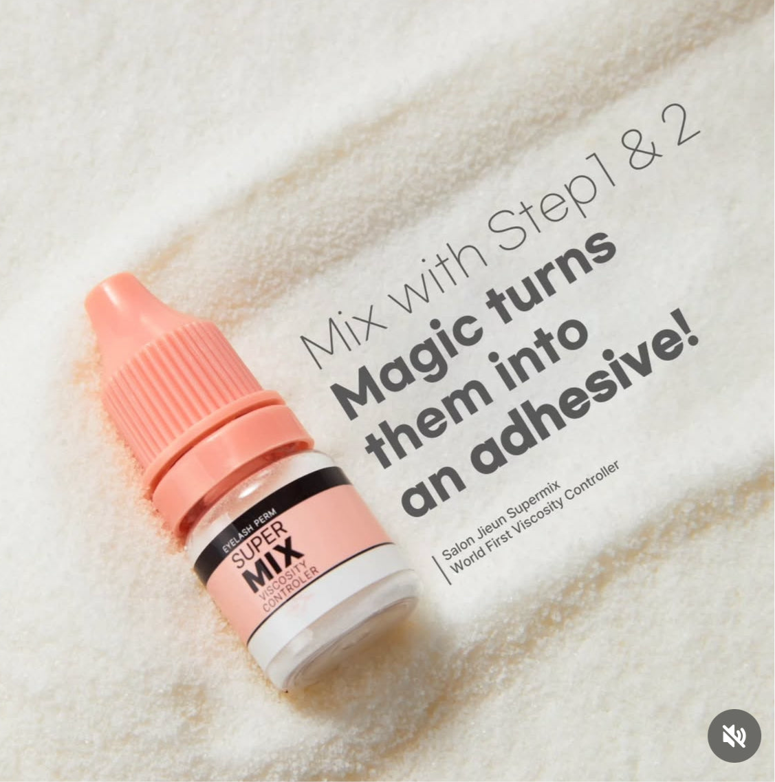 Salon Jieun Super Mix is a revolutionary powder-based viscosity enhancer for lash lift lotions. It transforms the lifting solution into a glue-like consistency, enabling simultaneous softening and secure lash adhesion in a single step, developed by the brand’s viscosity-control experts.